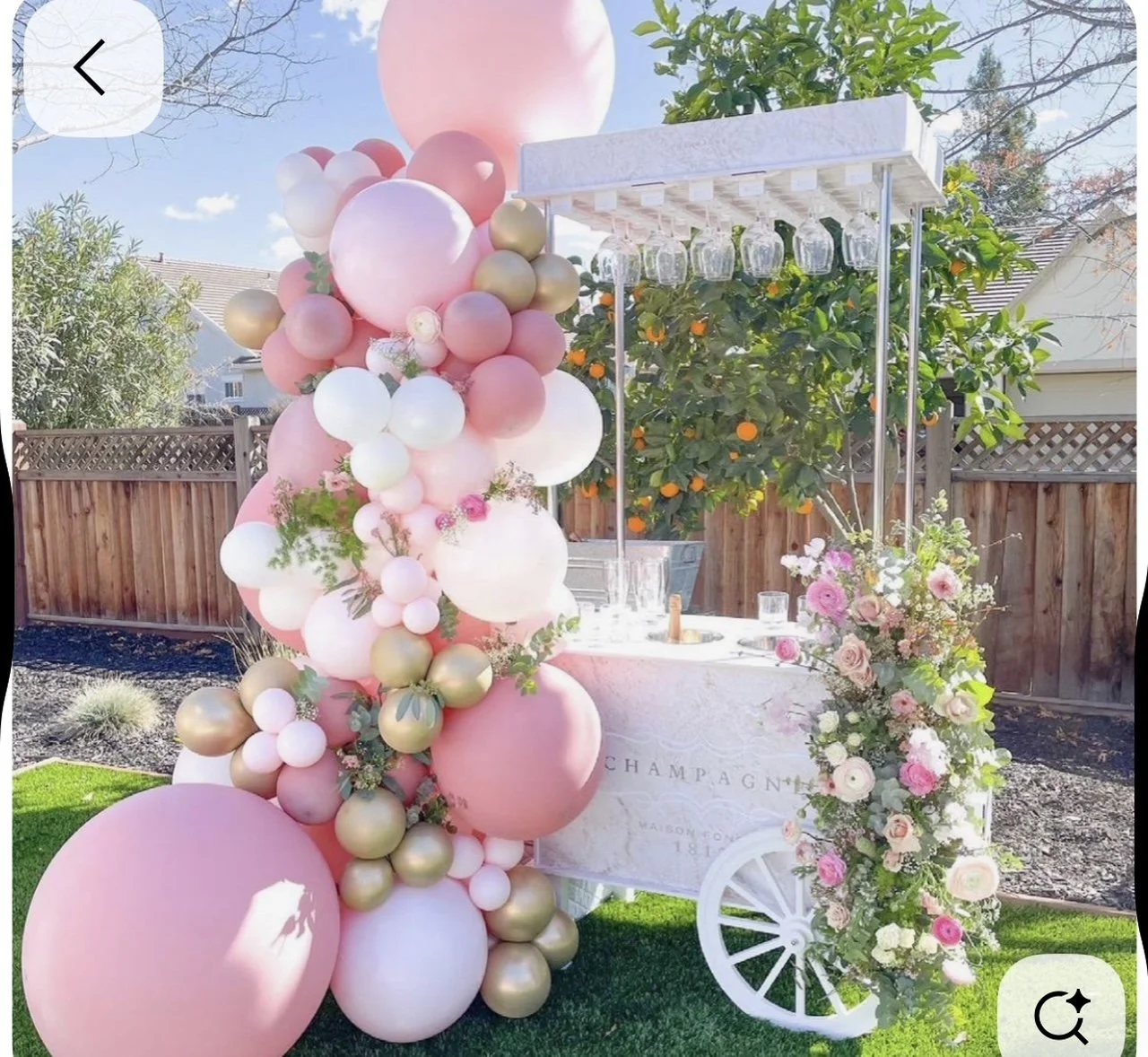 The Addison James Champagne Bubbly Bar is a true showstopper! This stunning Bubbly Bar elevates your event with unparalleled luxury and glamour. Floral garlands and exquisite decor are included in the pricing. Plastic champagne glasses are provided, with the option to upgrade to elegant glassware for an additional fee. Personalization of the cart is also available for an additional cost. Event attendants are available for an additional fee. Please note that alcohol is not included.